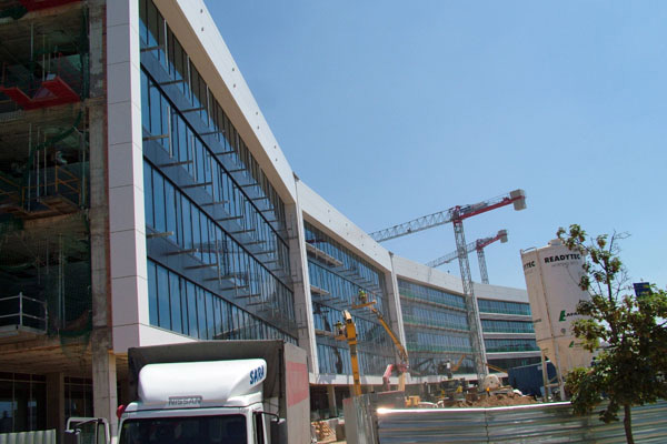 Mur-rideau modulaire, façade ventilée Alucobond et fenêtres en aluminium